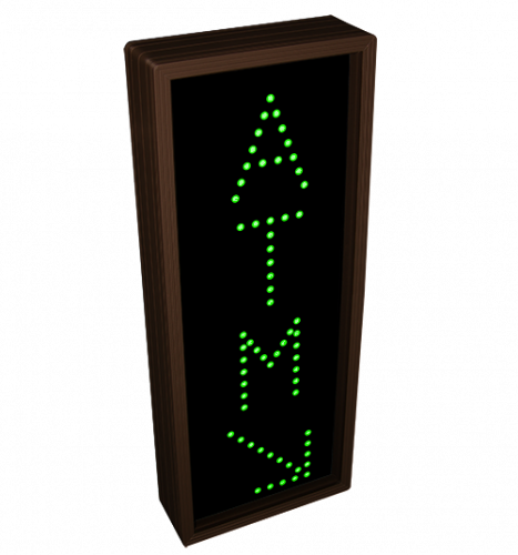 This TCL Series ATM w/Down Right Arrow (120-277VAC) outdoor, blank-out sign is designed with super bright LEDs and a contrasting face; we guarantee it's readable in direct sunlight. The sign message is formed by visible LEDs on a black sign face and is designed to illuminate the message(s) when turned on and blank out or extinguish the message when off.