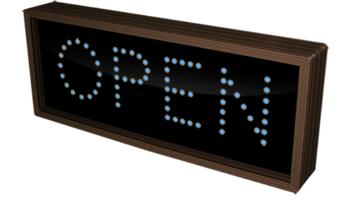 This TCL Series OPEN (12-24VDC) outdoor, blank-out sign is designed with super bright LEDs and a contrasting face; we guarantee it's readable in direct sunlight. The sign message is formed by visible LEDs on a black sign face and is designed to illuminate the message(s) when turned on and blank out or extinguish the message when off.