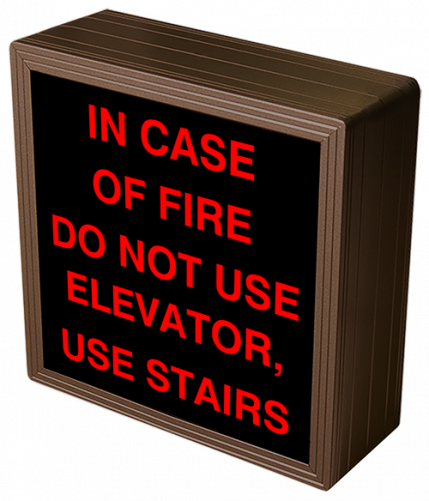 This SBL Series IN CASE OF FIRE DO NOT USE ELEVATOR, USE STAIRS indoor, blankout, LED backlit sign is designed with a matrix of energy efficient LEDs illuminating a block-style message. The sign features blankout technology that only displays the sign message when illuminated.