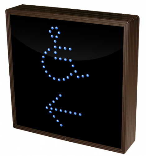 This TCL Series Handicap Symbol w/Left Arrow (120-277VAC) outdoor, blank-out sign is designed with super bright LEDs and a contrasting face; we guarantee it's readable in direct sunlight. The sign message is formed by visible LEDs on a black sign face and is designed to illuminate the message(s) when turned on and blank out or extinguish the message when off.