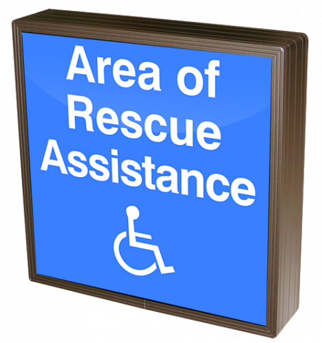 This SBLF Series Area of Rescue Assistance w/Handicap Symbol indoor, LED backlit sign features a block-style message that is readable without illumination. The message is viewable when off and can be illuminated to add emphasis to the message or to optimize readability in low light conditions.