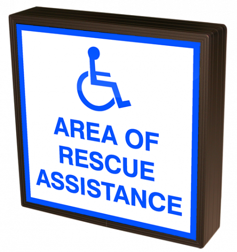 This SBLF Series AREA OF RESCUE ASSISTANCE indoor, LED backlit sign features a block-style message that is readable without illumination. The message is viewable when off and can be illuminated to add emphasis to the message or to optimize readability in low light conditions.