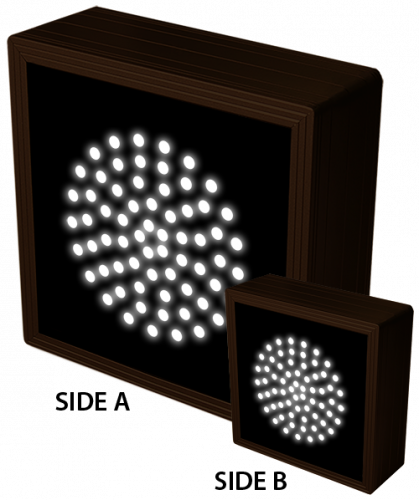 This TCL Series Indicator Dot, Single with Optional Flashing, 4 in dia, White, Double Face outdoor, blank-out sign is designed with super bright LEDs and a contrasting face; we guarantee it's readable in direct sunlight. The sign message is formed by visible LEDs on a black sign face and is designed to illuminate the message(s) when turned on and blank out or extinguish the message when off.
