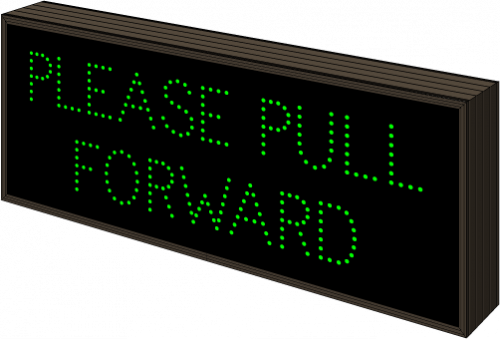 This TCL Series PLEASE PULL FORWARD outdoor, blank-out sign is designed with super bright LEDs and a contrasting face; we guarantee it's readable in direct sunlight. The sign message is formed by visible LEDs on a black sign face and is designed to illuminate the message(s) when turned on and blank out or extinguish the message when off.