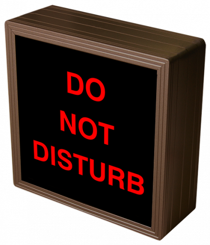 This SBL Series DO NOT DISTURB indoor, blankout, LED backlit sign is designed with a matrix of energy efficient LEDs illuminating a block-style message. The sign features blankout technology that only displays the sign message when illuminated.