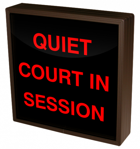 This SBL Series QUIET COURT IN SESSION indoor, blankout, LED backlit sign is designed with a matrix of energy efficient LEDs illuminating a block-style message. The sign features blankout technology that only displays the sign message when illuminated.