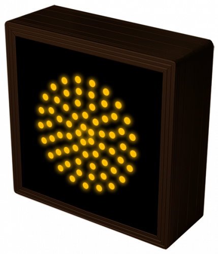 This TCL Series Indicator Dot, Single with Optional Flashing, 4 in dia, Amber (120-277VAC) outdoor, blank-out sign is designed with super bright LEDs and a contrasting face; we guarantee it's readable in direct sunlight. The sign message is formed by visible LEDs on a black sign face and is designed to illuminate the message(s) when turned on and blank out or extinguish the message when off.