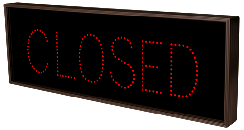 This TCL Series CASHIER | CLOSED (12-24VDC) outdoor, blank-out sign is designed with super bright LEDs and a contrasting face; we guarantee it's readable in direct sunlight. The sign message is formed by visible LEDs on a black sign face and is designed to illuminate the message(s) when turned on and blank out or extinguish the message when off.