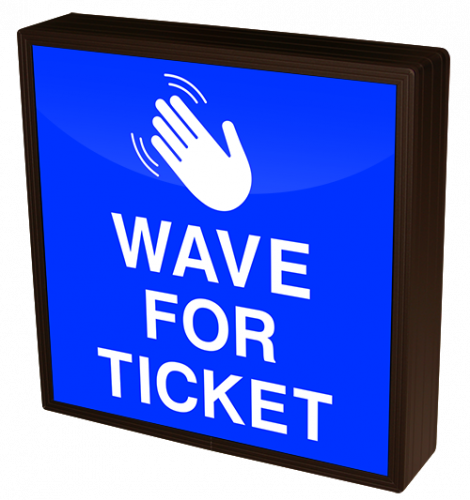 This PHXF Series WAVE FOR TICKET w/ Waving Hand Symbol outdoor sign is designed with high-intensity, LED reflected, backlit illumination and a block letter-style message face. The sign message is viewable in daylight conditions when off and can be illuminated at night or in low light conditions to optimize readability.