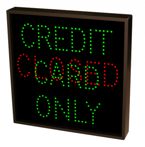 This TCL Series CREDIT CARD ONLY | CLOSED outdoor, blank-out sign is designed with super bright LEDs and a contrasting face; we guarantee it's readable in direct sunlight. The sign message is formed by visible LEDs on a black sign face and is designed to illuminate the message(s) when turned on and blank out or extinguish the message when off.