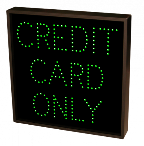 This TCL Series CREDIT CARD ONLY outdoor, blank-out sign is designed with super bright LEDs and a contrasting face; we guarantee it's readable in direct sunlight. The sign message is formed by visible LEDs on a black sign face and is designed to illuminate the message(s) when turned on and blank out or extinguish the message when off.