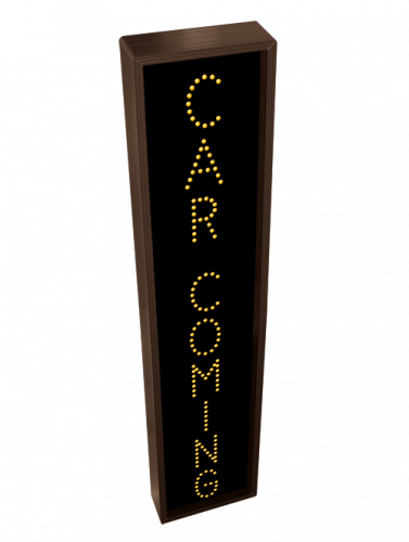 This TCL Series CAR COMING (120-277VAC) outdoor, blank-out sign is designed with super bright LEDs and a contrasting face; we guarantee it's readable in direct sunlight. The sign message is formed by visible LEDs on a black sign face and is designed to illuminate the message(s) when turned on and blank out or extinguish the message when off.