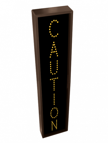 This TCL Series CAUTION (120-277VAC) outdoor, blank-out sign is designed with super bright LEDs and a contrasting face; we guarantee it's readable in direct sunlight. The sign message is formed by visible LEDs on a black sign face and is designed to illuminate the message(s) when turned on and blank out or extinguish the message when off.
